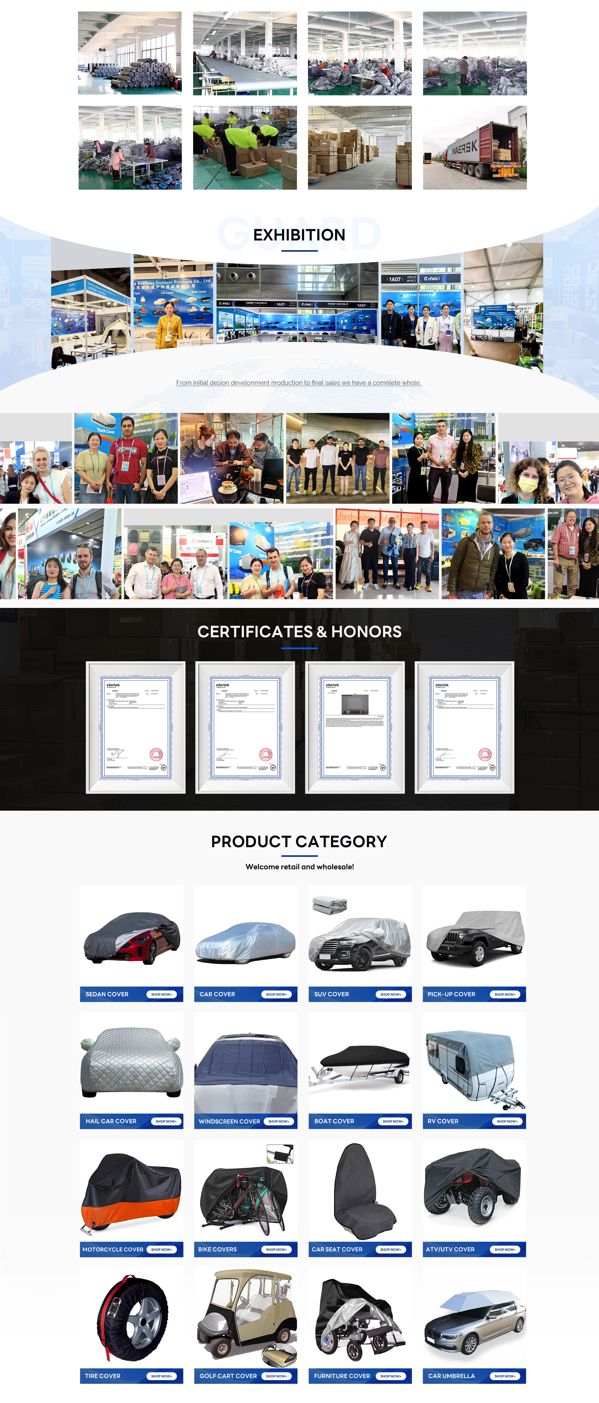 Principaux produits : Couverture de voiture, couverture de moto, couverture de caravane, couverture de meubles, couverture de bateau